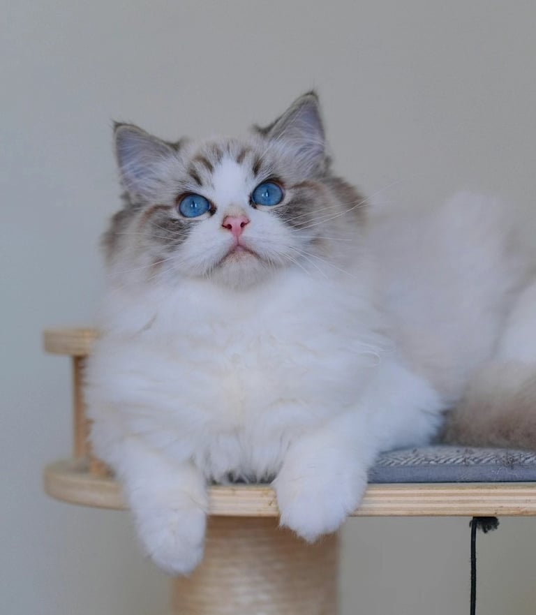 Hunter is a handsome Ragdoll cat with a robust head structure and an elegant body. His personality is angelic—gentle, kind, and utterly charming. We are thrilled to have such an exceptional Ragdoll cat. I believe his bloodline will significantly enhance the Ragdoll breed. I sincerely hope that he can pass on these strong traits to his offspring. 😊 I have a feeling their kittens will be very beautiful! 😊
